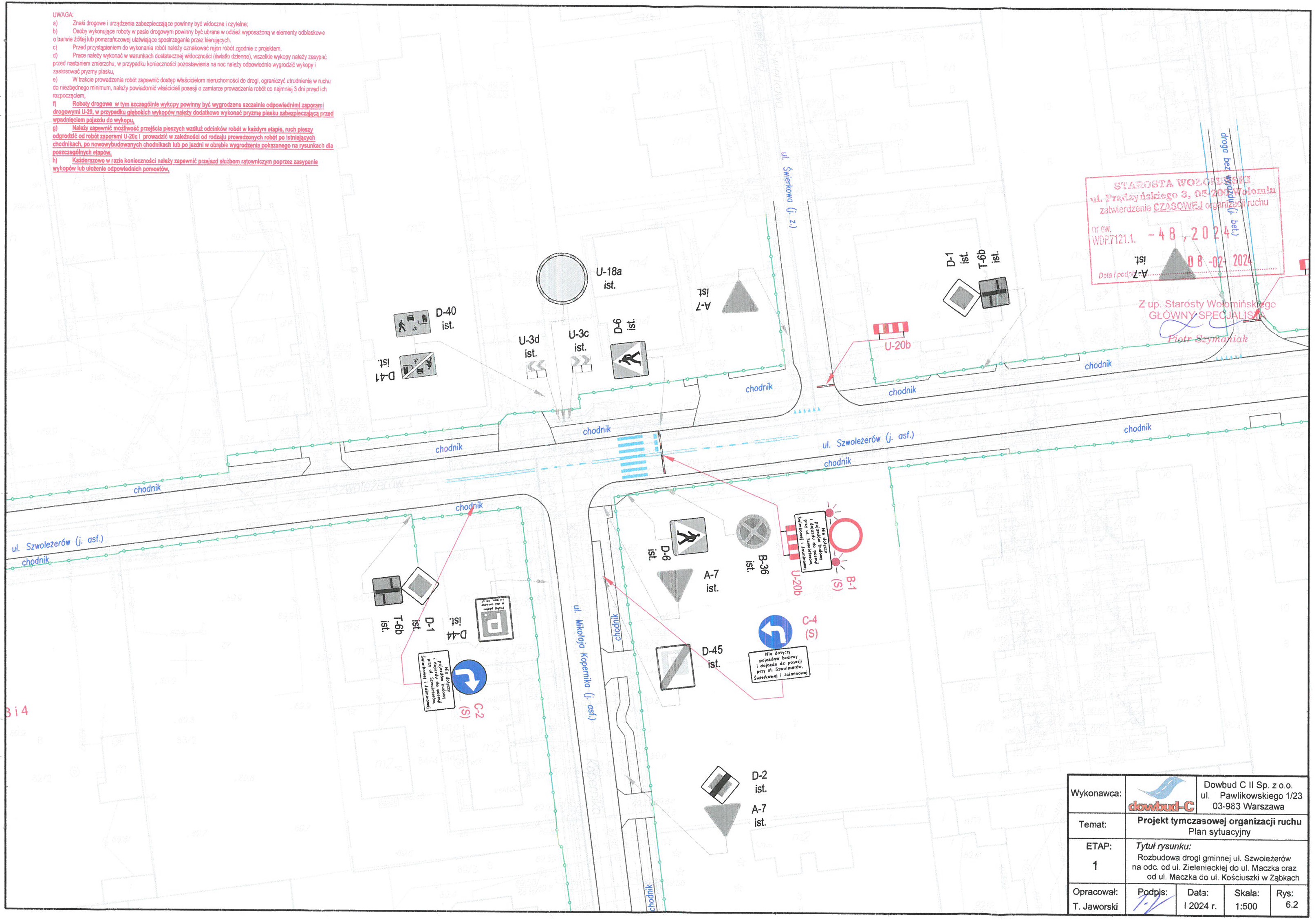 Firma Dowbud-C II Sp. z o.o. Sp. k. realizująca na zlecenie Miasta Ząbki przebudowę środkowego odcinka ul. Szwoleżerów (odcinek od ul.Zielenieckiej do ul.Kościuszki) poinformowała o planowanym rozpoczęciu prac i wprowadzeniu od wtorku 5 marca I etapu czasowej organizacji ruchu zakładającej wyłączenie z ruchu odcinka ul. Szwoleżerów od ul. Maczka (bez skrzyżowania) do ul. Kopernika (bez skrzyżowania).