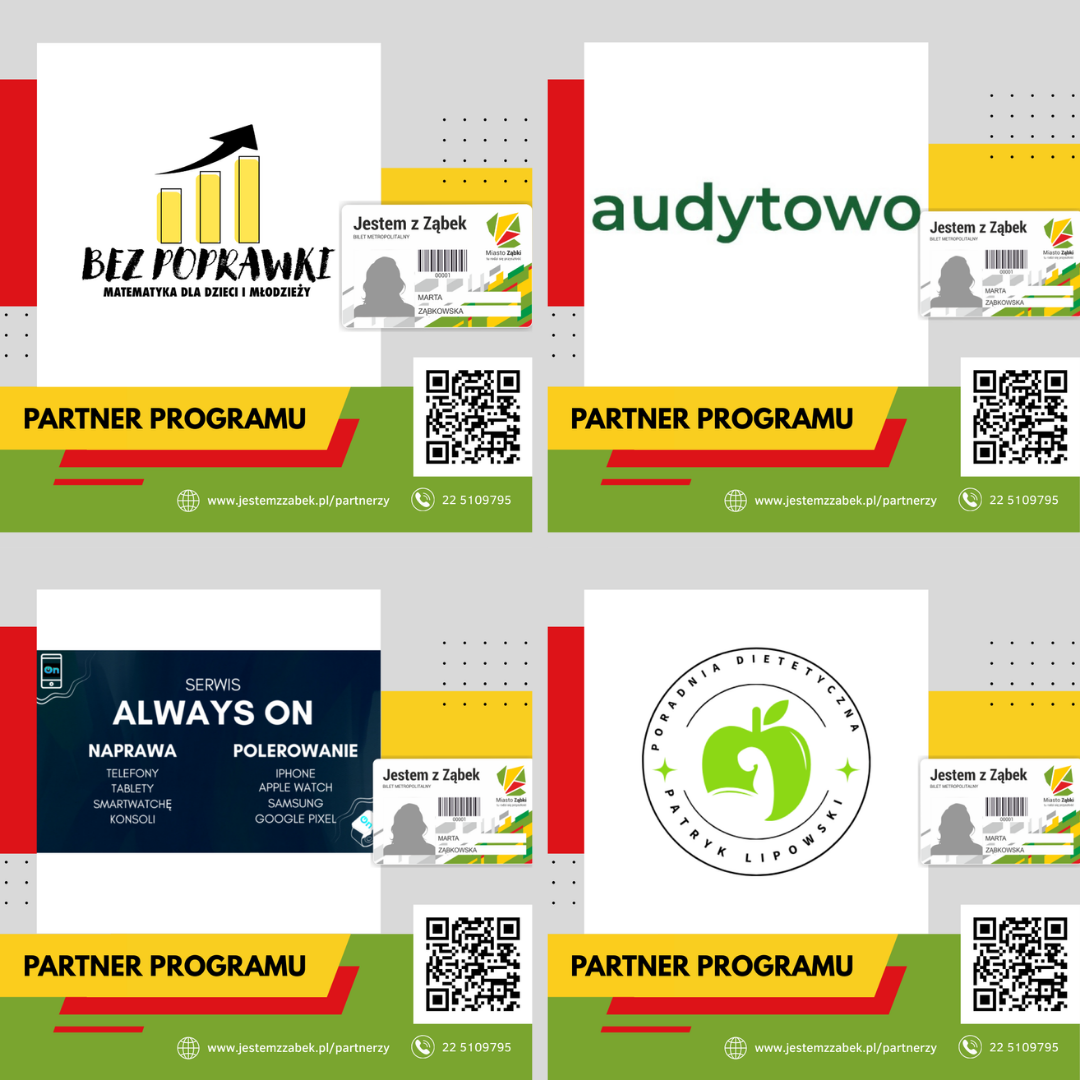 Zapraszamy do zapoznania się ze specjalną ofertą Partnerów Programu Karta Mieszkańca "Jestem z Ząbek" przygotowaną z myślą o posiadaczach aktywnej Karty: