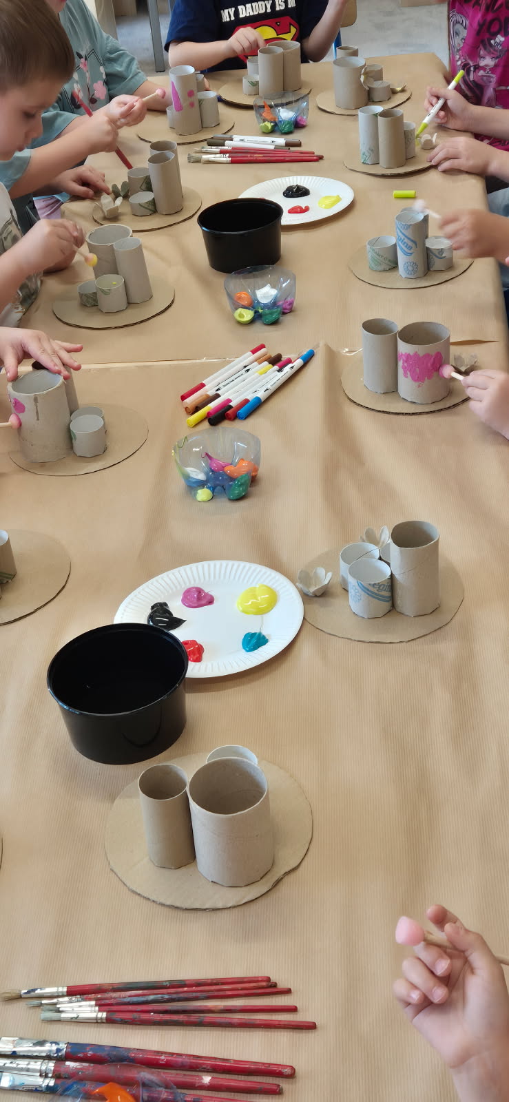 Na zakończenie warsztatów mali uczestnicy wzięli udział w części praktycznej – z rolek po papierze stworzyli własne, kolorowe organizery na kredki. Okazało się, że nawet najprostsze materiały mogą dostać drugie życie i stać się czymś naprawdę pożytecznym.