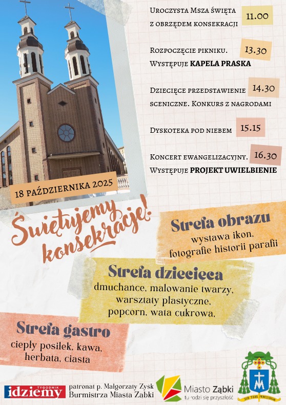 Już jutro - 18 października wielki dzień dla Parafii Zesłania Ducha Świętego w Ząbkach . O godz. 11:00 odbędzie się uroczysta Msza Święta, podczas której Biskup Diecezji dokona Konsekracji Kościoła. T o niezwykle ważny moment dla całej wspólnoty parafialnej.