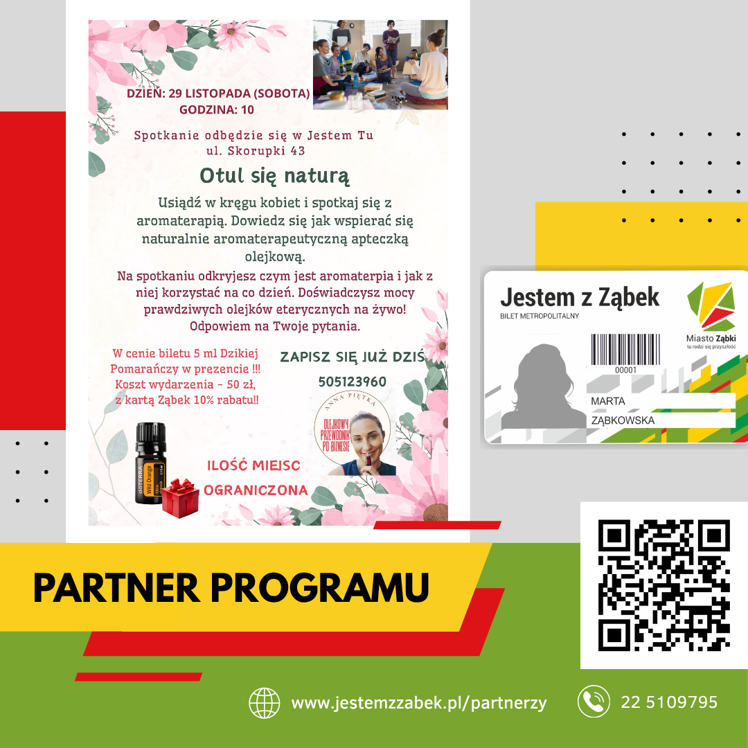 Już 29 listopada w wyjątkowej przestrzeni „Jestem Tu” przy ul. Skorupki 43 odbędzie się kolejne cykliczne spotkanie z naturą i zapachem, organizowane przez Partnera Programu Karta Mieszkańca "Jestem z Ząbek" - Annę Piętkę z Naturalnie olejkowo.