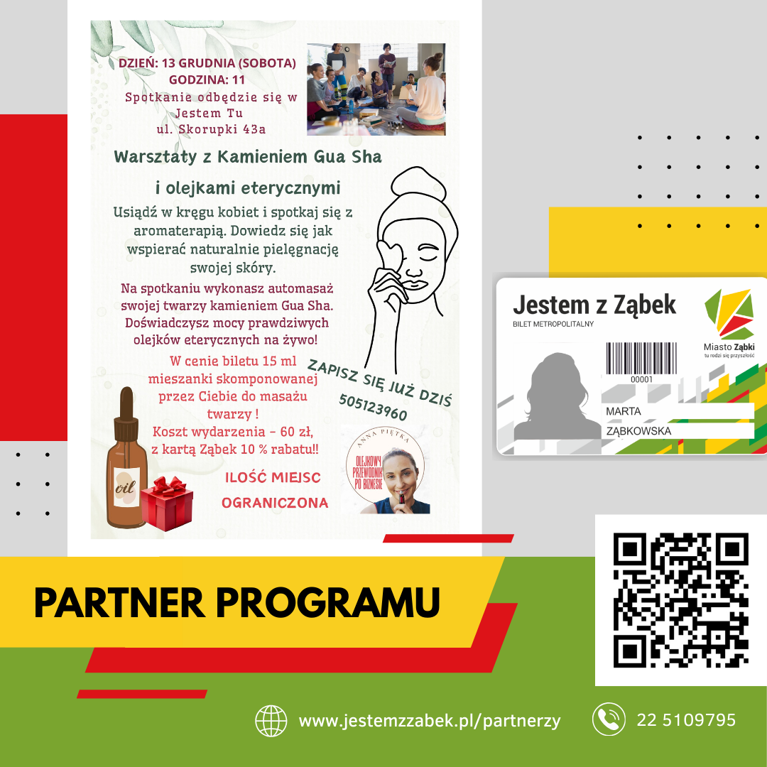 Już 13 grudnia w wyjątkowej przestrzeni „Jestem Tu” przy ul. Skorupki 43 odbędzie się kolejne cykliczne spotkanie z naturą. Tym razem tematem będzie: „Warsztat z Kamieniem Gua Sha i olejkami eterycznymi” – jak naturalnie dbać o pielęgnację swojej skóry za pomocą olejków eterycznych.
