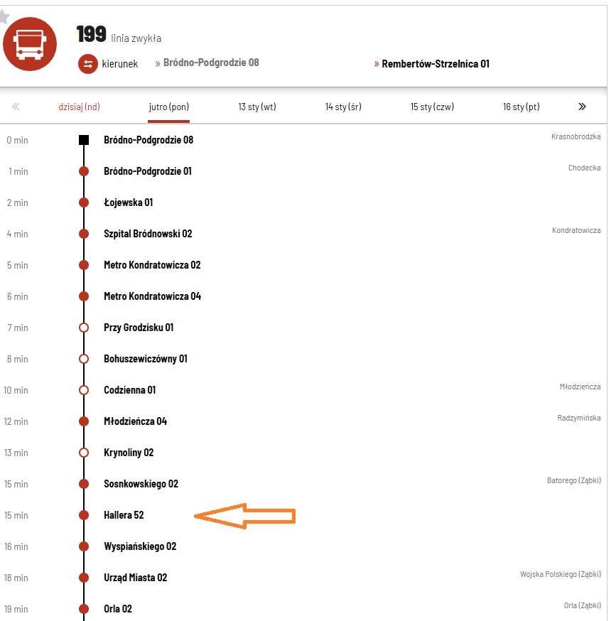 Autobusy linii 199 kursować będą na podstawie zaktualizowanego rozkładu jazdy od dnia 12 stycznia 2026 r.