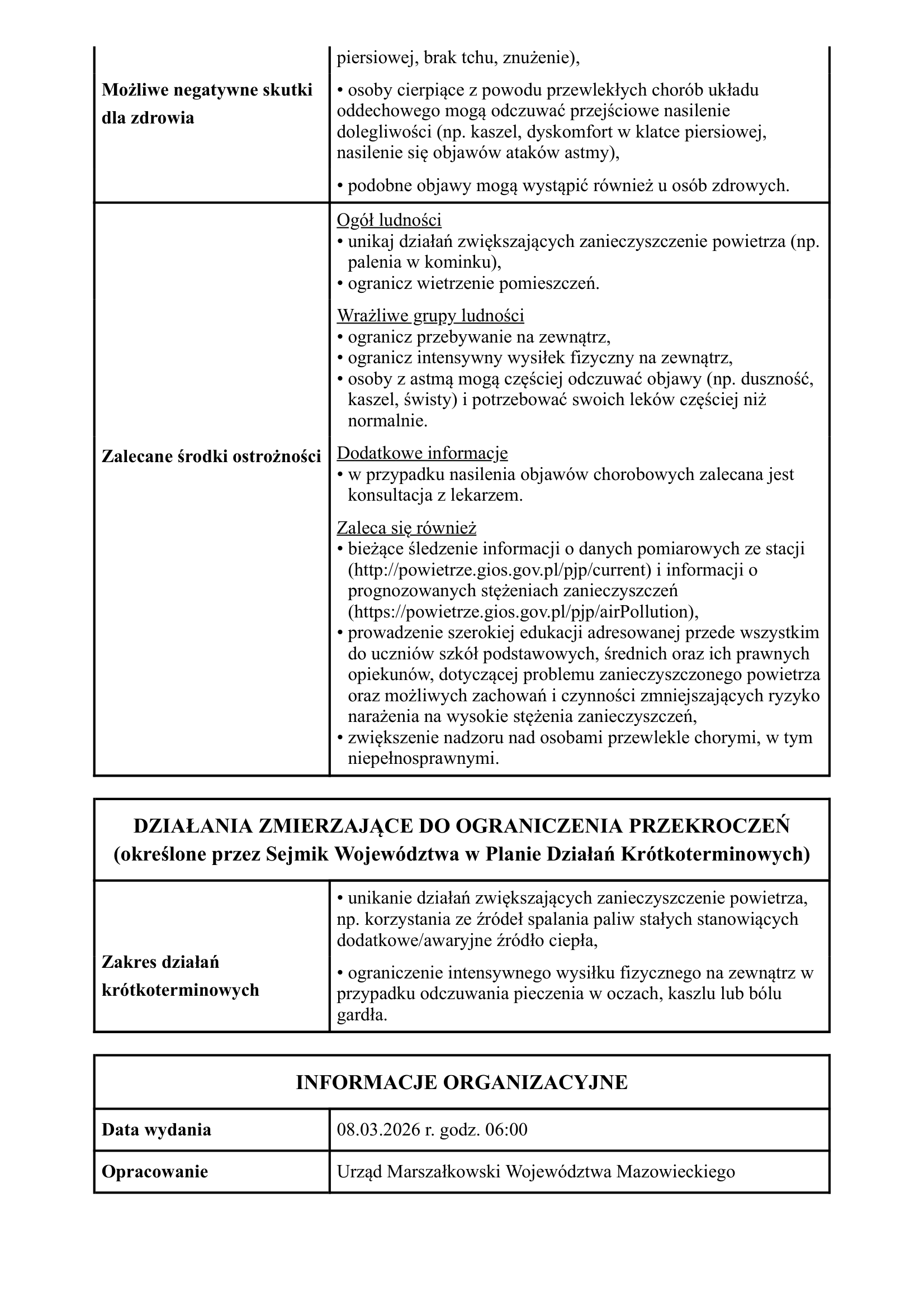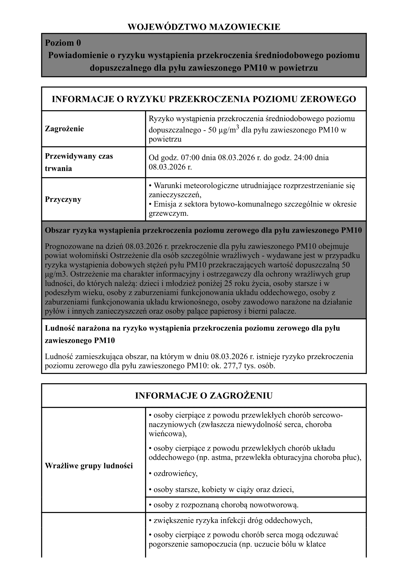 Powiadomienie o ryzyku wystąpienia przekroczenia średniodobowego poziomudopuszczalnego dla pyłu zawieszonego PM10 w powietrzu