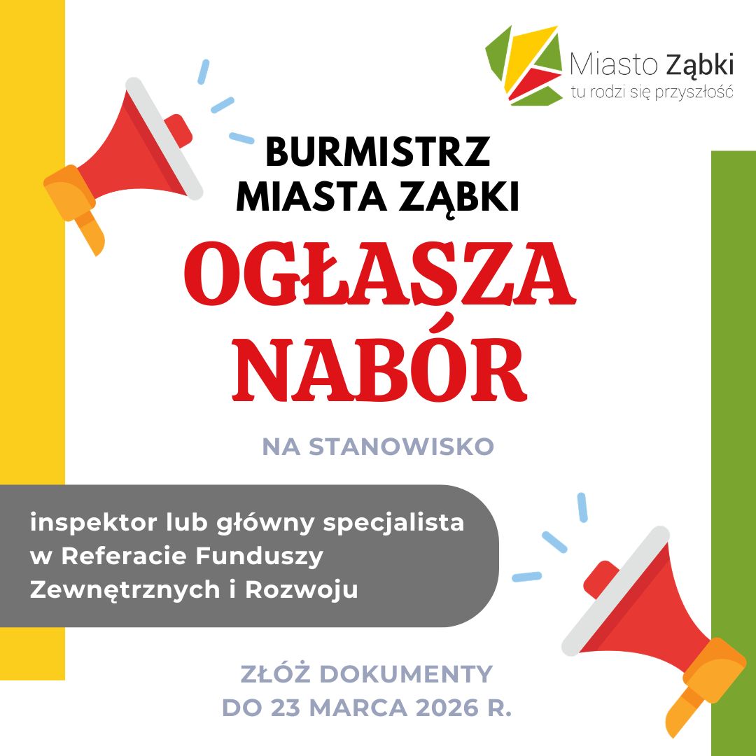 Trwa nabór na stanowisko inspektor lub główny specjalista w Referacie Funduszy Zewnętrznych i Rozwoju w Urzędzie Miasta Ząbki.