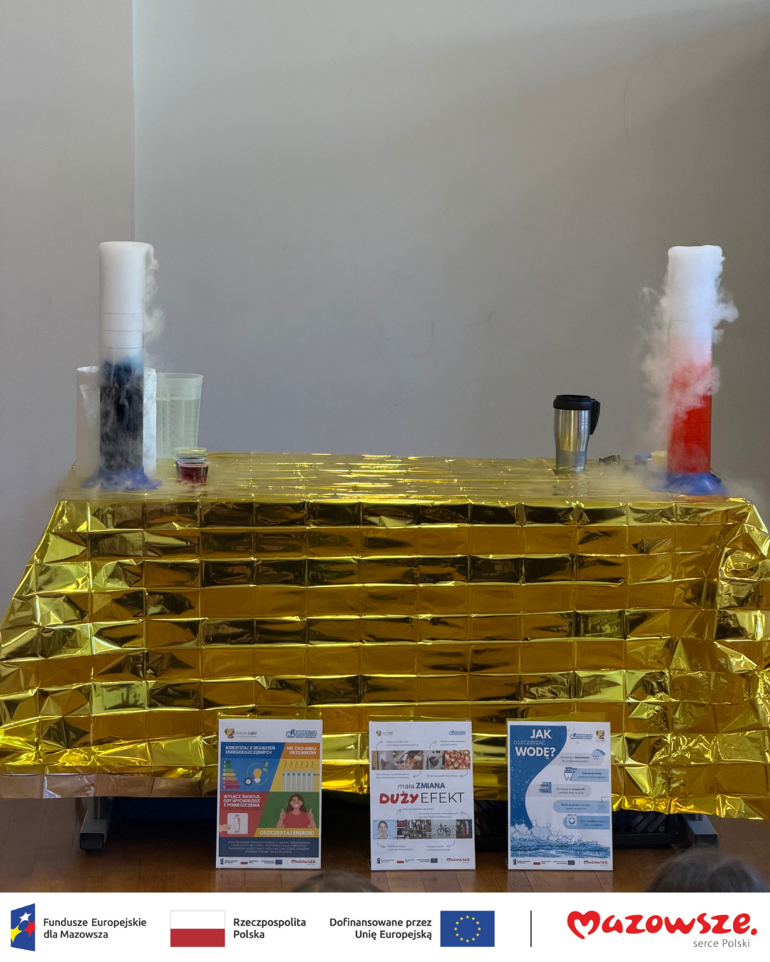 Warsztaty stanowią część akcji edukacyjnej w ramach realizacji projektu pn. „Poprawa efektywności energetycznej infrastruktury szkolnej na terenie Miasta Ząbki” współfinansowanym z Funduszy Europejskich dla Mazowsza.