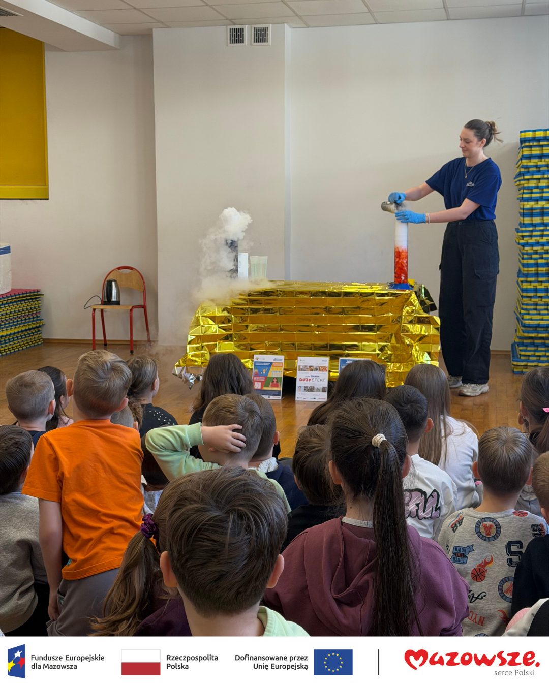 Dziś uczniowie klas I-III mieli wyjątkową okazję wziąć udział w warsztatach dotyczących gazów cieplarnianych. Uczestnicy zdobyli wiedzę na temat ochrony środowiska, poznali właściwości gazów, które nas otaczają i z wielką radością oglądali eksperymenty z suchym lodem.