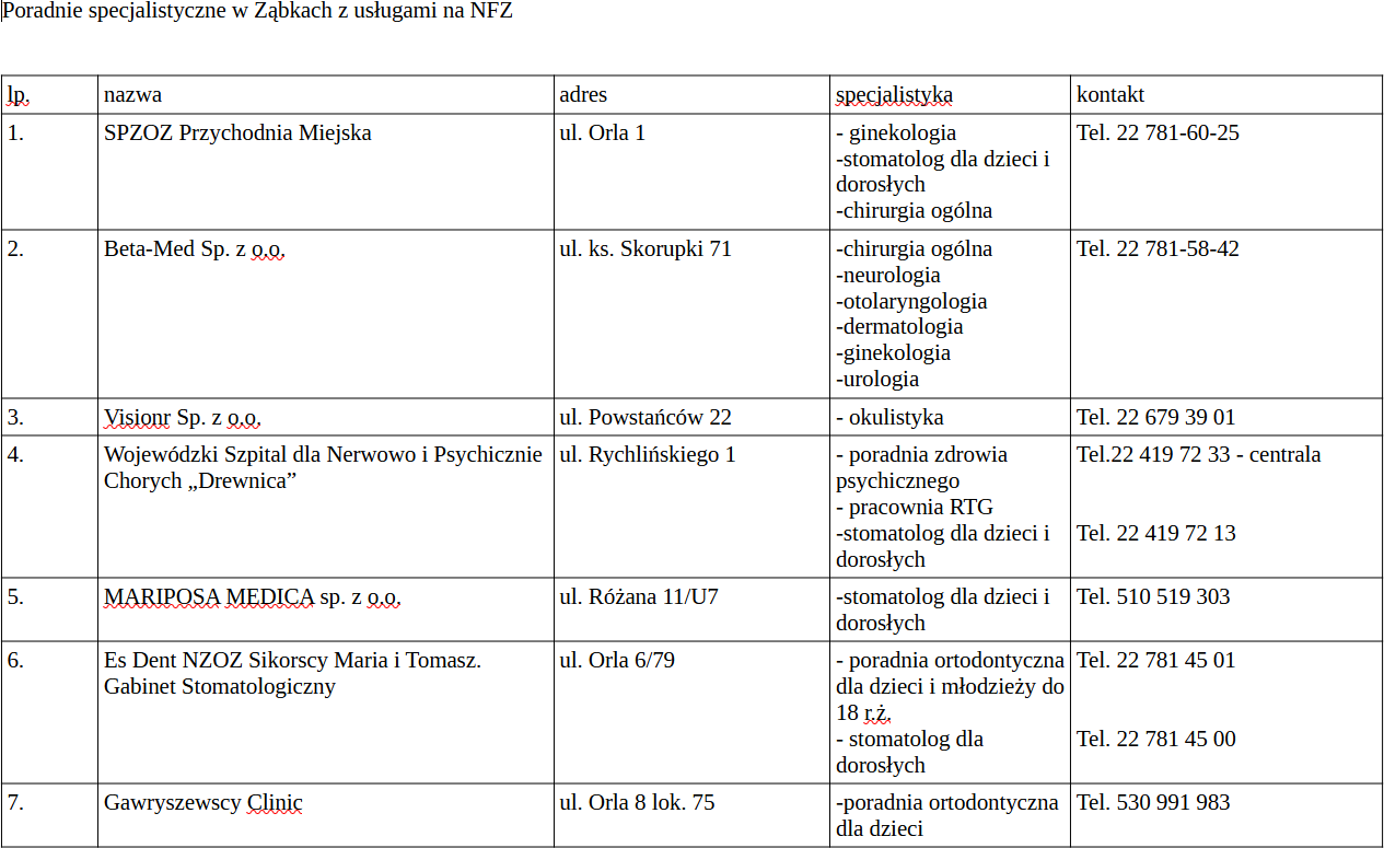 1. CENTRUM MEDYCZNE IM. BITWY WARSZAWSKIEJ 1920 R. W RADZYMINIE - SAMODZIELNY PUBLICZNY ZESPÓŁ ZAKŁADÓW OPIEKI ZDROWOTNEJ;