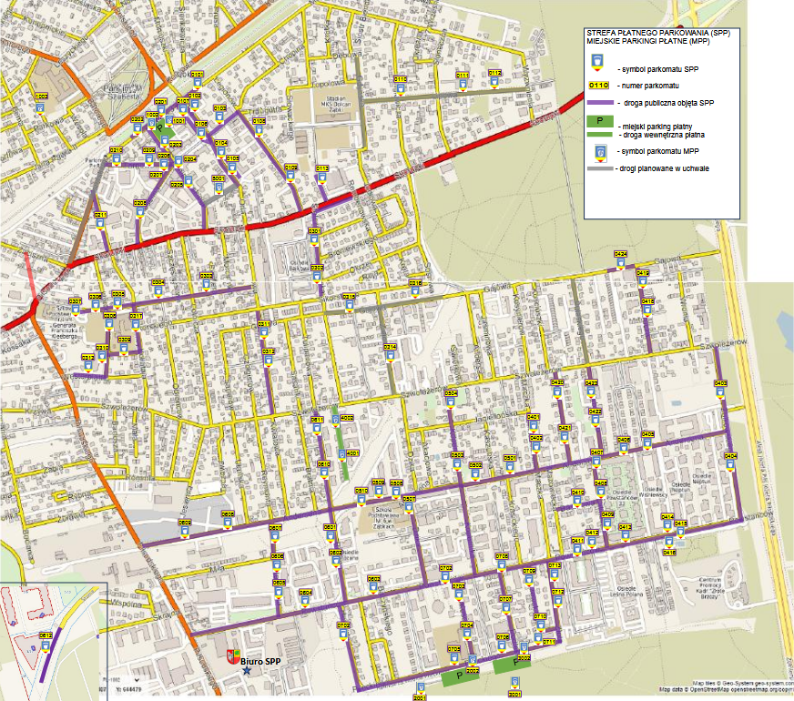 Wjazd do strefy będzie oznakowany znakiem drogowym D-44 „strefa płatnego parkowania", a wyjazd z SPP oznakowany jest znakiem D-45 „koniec strefy płatnego parkowania". Obowiązek uiszczania opłat będzie po 31.03.2022 r. na ulicach na których pojawi się oznakowanie wskazujące na płatną strefę.