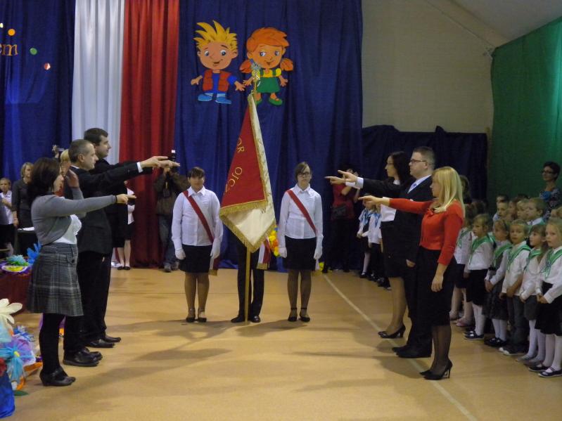 Na ścianie hasło przewodnie uroczystości "ważne są tylko te dni, dni na które czekamy..." Dyrektor Agnieszka Piskorek powitała wszystkich zaproszonych gości, którzy przyczynili się do uświetnienia uroczystości - począwszy od Burmistrza Miasta Ząbki Roberta Perkowskiego, Sekretarz Miasta Patrycji Żołnierzak, zaproszonych dyrektorów i wicedyrektorów ząbkowskich szkół i świetlic środowiskowych na rodzicach kończąc. Wreszcie wejście, po kolei, sześciu klas pierwszych. A następnie zapierające dech w piersiach, niesamowite wykonanie "Dni, których jeszcze nie znamy" Marka Grechuty w wykonaniu Piotra Malinowskiego, ucznia kl. Vc.