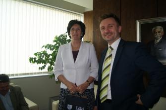 Burmistrz Ząbek Robert Perkowski oraz zastępca Artur Murawski spotkali się z wiceprezes Polskiego Komitetu Olimpijskiego Ireną Szewińską.