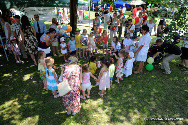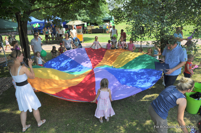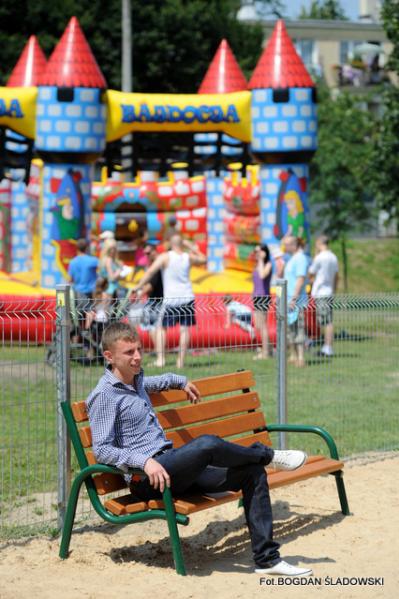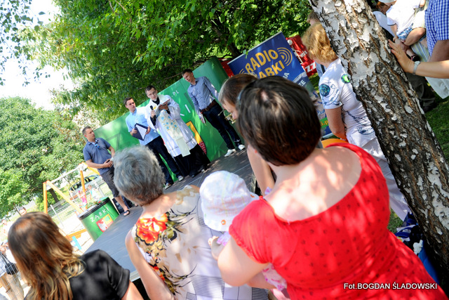 Aleją parkową podjeżdżały samochody i przywoziły na rozstawione już stoiska materiały reklamowe, gadżety i różne niespodzianki dla najmłodszych. Pęczniało coraz więcej balonów, a nadmuchiwany zamek stawał się coraz bardziej imponujący. Piękny, kolorowy plac zabaw jeszcze był zamknięty, bo tego dnia klucz od furtki miał przy sobie jeden człowiek – burmistrz naszego Miasta Robert Perkowski. O godzinie 11.00 Park im.Szuberta wypełniał się publicznością, wśród której oczywiście dominowały ząbkowskie dzieciaki z nie mniej podekscytowanymi rodzicami.