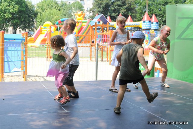 Po części oficjalnej rozpoczęła się zabawa. Na scenie zaprezentował się Klub Mamy Ząbki, publiczność porwał Klub Tańca Nowoczesnego "Fart" z Miejskiego Ośrodka Kultury pod opieką Kingi Jakubowskiej, po czym do zabawy ruszyli animatorzy zabaw dziecięcych. Wokół placu zabaw wyrósł wspaniały dmuchany zamek, zjeżdżalnie, suche piłeczki, które tłumnie okupowali najmłodsi.