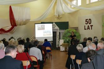 Dzisiejsze wydarzania mają charakter niezwykle doniosły i historyczny. Są zapisaną kartą 50 lat historii szkoły. Dzisiejszy dzień jest także symbolem wzruszeń, zadumy refleksji i wspomnień – powiedziała Irena Małyszczuk. Z perspektywy mijających lat działania wychowawczo dydaktyczne zostały uwieńczone wieloma sukcesami. Zarówno na szczeblu wojewódzkim, krajowym czy międzynarodowym. Chlubą naszą są jednak przede wszystkim ludzie związani ze szkołą. Wspaniali nauczyciele i wychowawcy - mówiła dyrektor. Szczególnie podziękowała tym którzy tworzyli historię szkoły. Za trud wychowania wielu pokoleń, za niezłomne przekazywanie fundamentalnych wartości, takich jak patriotyzm, wrażliwość społeczna, tolerancja, odpowiedzialność oraz poszanowanie godności drugiego człowieka.