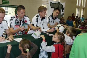 W końcu nadszedł długo oczekiwany moment - czas na autografy! Przed piłkarzami ustawiła się długa kolejka młodych kibiców z naszykowanymi do podpisu piłkami, koszulkami i notesami. Nad sprawnym przebiegiem tej części imprezy czuwali ząbkowscy legioniści.