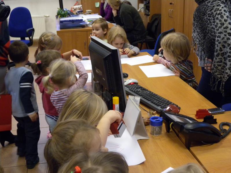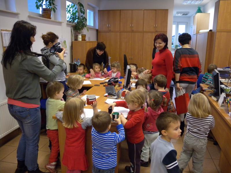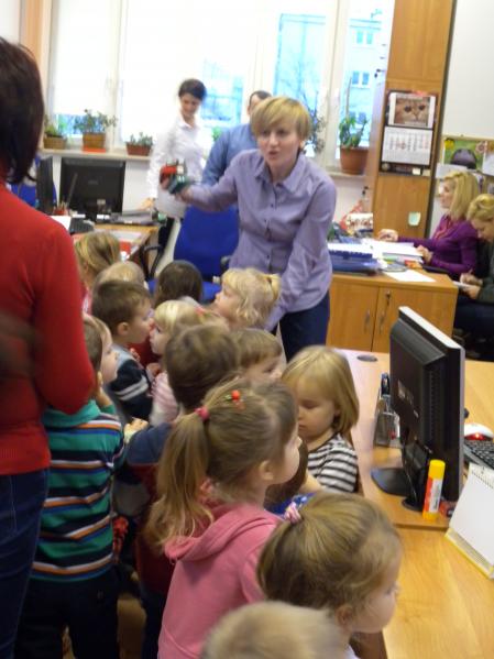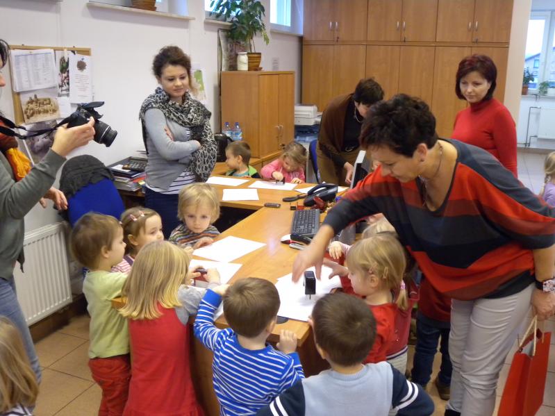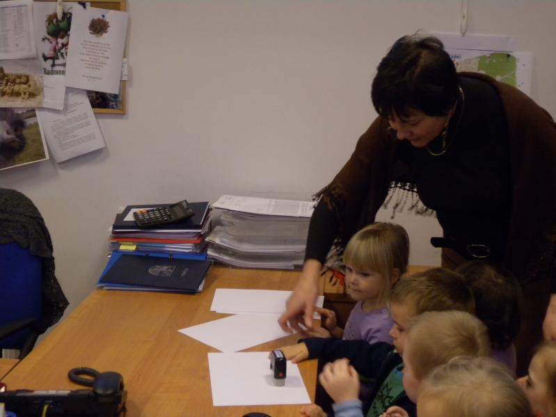 Celem wizyty przedszkolaków było zwiedzanie urzędu oraz wręczenie odwiedzanym zaproszeń na pasowanie na przedszkolaka w dniu 6 grudnia.