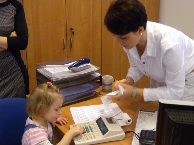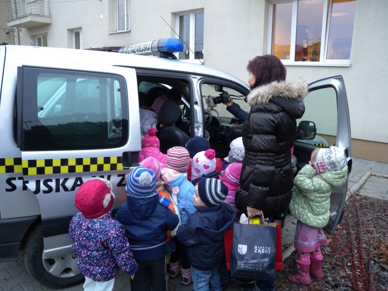 Przedszkolaki zwiedziły jeszcze Referat Budżetowo - Finansowy, który znajduje się w urzędowej "wieży" i tam wraz ze skarbnik miasta Elżbietą Żmijewską mogły pieczętować do woli. Natomiast z kierowniczką finansów Katarzyną Balcerzak - Jałtuszewską liczyły na specjalnym księgowym kalkulatorze. W tych czynnościach pomagały także pozostałe panie z referatu. Maluchy opuszczały finanse z plikiem zapieczętowanych kartek, które otrzymały na pamiątkę. Dzieci odwiedziły urzędowe kadry, czyli panie Ewę, Babrarę i Iwonę oraz referat oświaty, gdzie podjęły dzieci, panie Grażyna i Agnieszka. Na koniec został do zwiedzenia budynek Straży Miejskiej. Tam przedszkolaki obejrzały sporą kolekcję emblematów Straży Miejskiej z całej Polski oraz mundur strażnika. Największą atrakcją był jednak samochód Straży Miejskiej z uruchomionymi kogutami w którym każdy przedszkolak mógł posiedzieć, a niektórzy mówili nawet przez megafon. To była nie lada frajda.