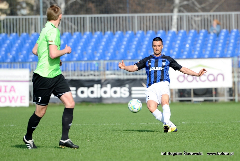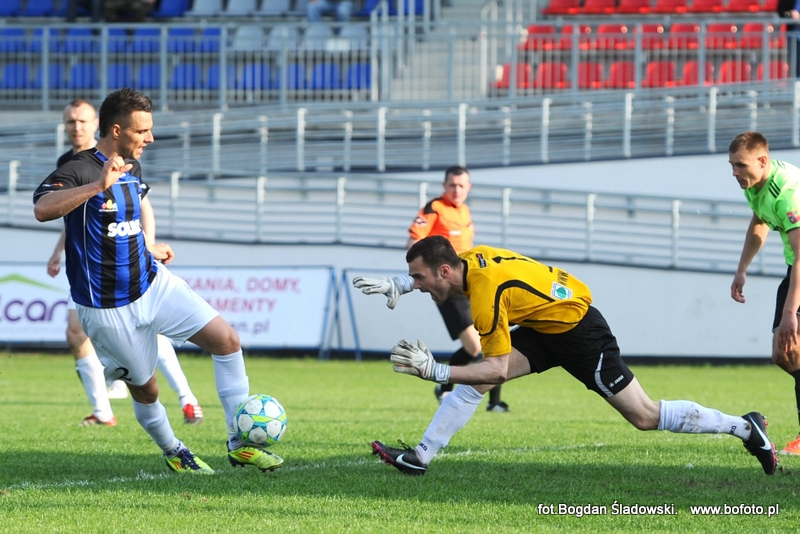 Zespół z Bydgoszczy również miał aspiracje ekstraklasowe, ale obecnie zajmuje siódme miejsce w tabeli. Goście mogli przegrać w wyższych rozmiarach, ale w 78. minucie rzutu karnego nie wykorzystał Bartosz Osoliński. Chwilę wcześniej bramkarza gości pokonał Grzegorz Piesio.