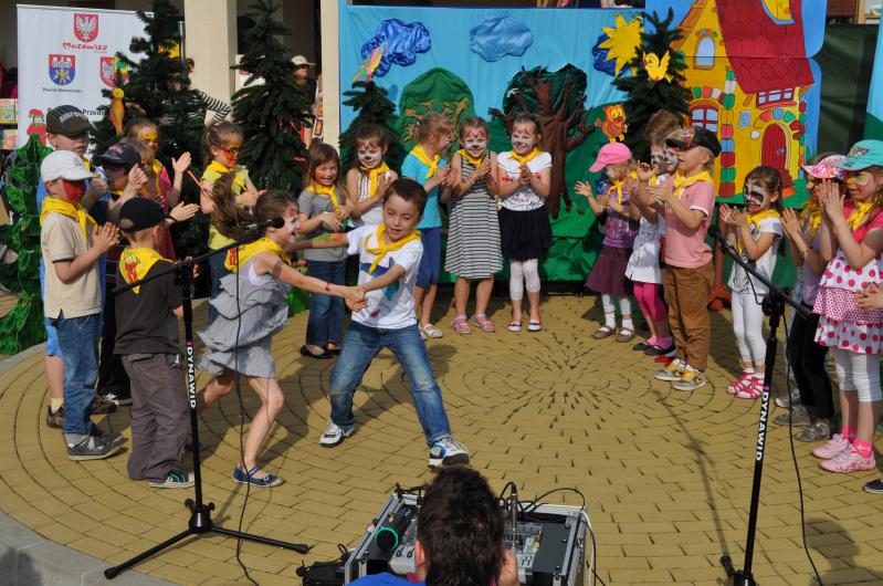 Po występach artystycznych, dzieci wraz z rodzicami wprowadzone w radosny nastrój uczestniczyły w dalszej wspólnej zabawie. Dzieci mogły pobawić się w czarodziejskich dmuchanych zamkach oraz w basenie z kuleczkami, a także sprawdzić swoje możliwości w sportowych konkurencjach. Dużym powodzeniem cieszyło się także malowanie twarzy, gdzie spod czarodziejskich rąk pań dzieci zamieniały się w motylki, wróżki i super bohaterów. Trzeba przyznać, że zarówno dzieci, jak i ich rodzice bardzo chętnie włączali się do zabaw, biorąc udział w różnych konkurencjach proponowanych w poszczególnych kącikach: plastycznym, oczopląsków, dobrej miny, zgaduj zgadula, jaka to bajeczka?, zmysłów, memo-game, wszak każde dziecko chciało zdobyć upragnioną nagrodę.