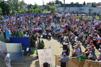 W tym roku wszyscy spotkaliśmy się 6 czerwca w ogrodzie naszego przedszkola. Punktualnie o godzinie 16.00 Dyrektor Przedszkola Pani Jolanta Salak wraz z Burmistrzem Miasta Ząbki Robertem Perkowskim przywitała wszystkich zaproszonych gości, dzieci i ich rodziców oraz pracowników przedszkola, otwierając drzwi do "krainy zabawy".