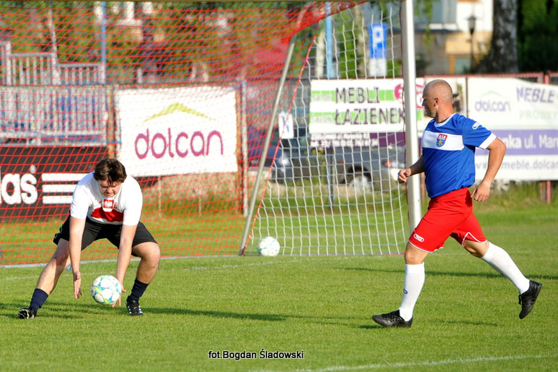 Już w pierwszej minucie padła pierwsza bramka, którą zdobył Dariusz Kokoszka- wójt gminy Jadów. Durgą bramkę w świetnym stylu zdobył Robert Podoliński – trener Dolcan Ząbki.