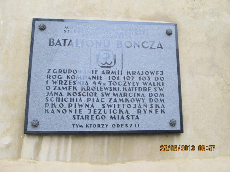 Uczestnicy oglądali leżącą u podnóża Zamku Królewskiego ostrzelaną w 1944 roku kolumnę Zygmunta, przeszli ulicą Brzozową słuchając opowieści o domu profesorów i ich losach powstańczych, pochylili się nad figurą w Kościele św. Jacka, oraz obejrzeli miejsca walk powstańczych na murach obronnych. Mury Starego Miasta tworzyły podczas powstania linię obrony dla batalionu "Gustaw". Kolejnym etapem spaceru było obejrzenie kamienia