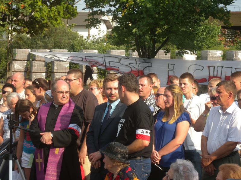 Kiedy wybiła godzina "W" w całym mieście rozległy się syreny a w niebo poszybowały race świetlne, odśpiewano Hymn Państwowy a ks. Andrzej Kopczyński odmówił modlitwę w intencji poległych powstańców. Złożono również wieniec w imieniu władz miasta i ząbkowskiej społeczności.Ząbkowscy Legioniści przygotowali pierwszą w naszym mieście inscenizacje walk powstańczych. Rekonstrukcja podkreśliła symbolikę i znaczenie flagi, rolę Morowych Pań, relacje i wzajemny szacunek do siebie Powstańców oraz przybliżyła charakter walk. Pokaz był prezentem i formą podziękowania dla przybyłych Kombatantów. Po zakończeniu rekonstrukcji wspólnie odśpiewano Rotę. Następnie głos zabrali : w imieniu Kombatantów RP i BWP – Stefan Załęski, burmistrz miasta Robert Perkowski, radny powiatu wołomińskiego Ryszard Walczak oraz ksiądz proboszcz Andrzej Kopczyński.