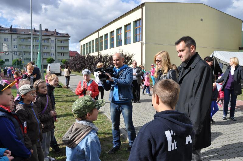 Kiedy uczniowie dzielnie zdobywali kolejne punkty kontrolne dyrektor Tomasz Łukawski wraz z przewodniczącym Rady Rodziców Krzysztofem Konopką w asyście pocztu sztandarowego składali kwiaty pod pomnikiem Małego Powstańca na Starym Mieście