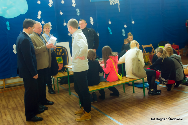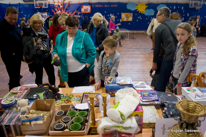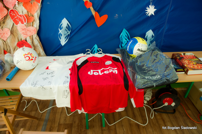 Głównym punktem całej akcji była licytacja, na której sprzedawaliśmy miedzy innymi gadżety sportowe z autografami, podpisane książki i płyty a także zaproszenia i vouchery. Do licytacji przyłączył się także pan burmistrz, który wystawił swoje pióro oraz zaproszenie na wspólną kawę.