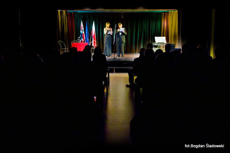 Aktorzy barwnie przybliżyli historię Norwegii, nawiązali do genezy hymnu narodowego, "Ja, vi elsker dette landet " co oznacza "Tak, kochamy ten kraj", którego zgromadzona publiczność wysłuchała z szacunkiem, oczywiście wstając z miejsc. Następnie głos zabrali J.E. Ambasador Karsten Klepsvik i Burmistrz Ząbek Robert Perkowski. W swoim wystąpieniu nawiązali do przyjaźni między naszymi krajami a także do możliwości zacieśnienia stosunków kulturalnych i gospodarczych poprzez ustanowienie miasta partnerskiego dla Ząbek. Z rąk burmistrza Karsten Klepsvik otrzymał pamiątkową fotografię, płyty CD przygotowane specjalnie z tej okazji i bukiet kwiatów. W dalszej części wieczoru na scenie pojawił się Tomasz Kopiszka – autor wystawy fotograficznej poświęconej Norwegii. W konwencji luźnej rozmowy , którą poprowadzili Anna Grabińska i Marek Wysocki dowiedzieliśmy się o tradycjach oraz zwyczajach tego pięknego kraju, które stanowią pieczołowicie pielęgnowane dziedzictwo kulturowe. Gwiazdami tego pięknego i niepowtarzalnego wieczoru byli znakomici artyści sceny operowej: Beata Wardak i światowej sławy tenor Leszek Świdziński, którym akompaniowała wybitna koreańska pianistka Seo Kyeong Yeon. Beata Wardak zaśpiewała pieśń Agostino Lary "Solamente una vez", porywając do tańca Ambasadora Karstena Klepsvika, a Leszek Świdziński specjalnie przygotowaną z okazji wydarzenia pieśń norweskiego kompozytora epoki romantyzmu Edwarda Giega pt "Ich liebe dich".