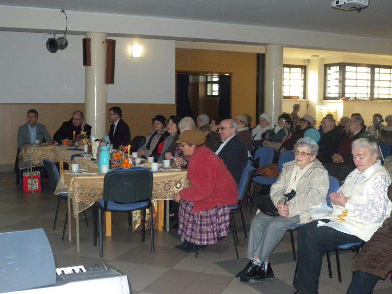 Po sprawozdaniu głos zabrali zastępca burmistrza Artur Murawski, starosta wołomiński Piotr Uściński i ks. proboszcz parafii Miłosierdzia Bożego Andrzej Kopczyński. Składali seniorom noworoczne, życzenia, starosta podtrzymał swoją już wcześniejszą deklarację, że kiedyś do klubu przystąpi, a proboszcz przypomniał o zaletach bycia seniorem - uśmiechu na twarzy i zdrowym dystansie do rzeczywistości, podkreślił również, że seniorzy, którzy sami mają niewiele, zawsze podzielą się z potrzebującymi. Potem były życzenia i dzielenie się opłatkiem, a na koniec piękny występ chóru "Złota Jesień".