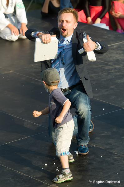 Imprezę poprowadził znany dziennikarz radiowy i telewizyjny Ziemowit Pędziwiatr. Już od godziny 10.00 rano można było zobaczyć na małej scenie przy basenie nie lada atrakcje, takie jak występy klauna iluzjonisty, pokaz puszczania ogromnych baniek mydlanych, występy dzieci z sekcji Miejskiego Ośrodka Kultury i Miejskiego Ośrodka Sportu i Rekreacji w Ząbkach a także pokaz sztuki cyrkowej oraz sztuk walki.