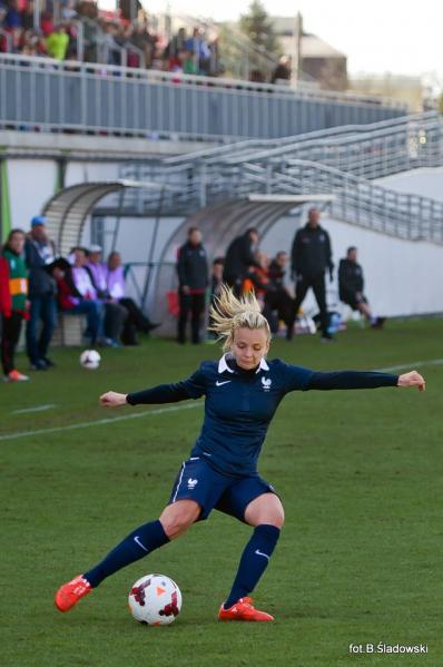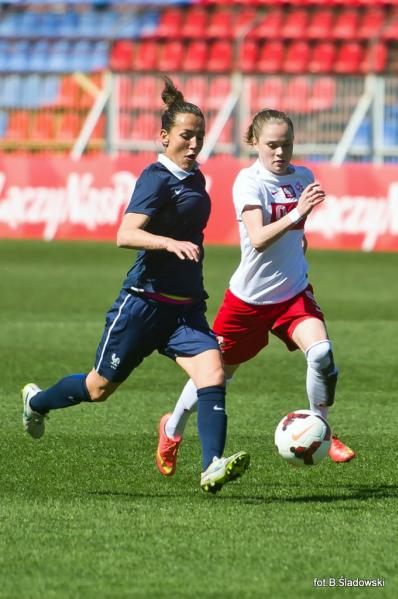 Obie połowy meczu przebiegały podobnie. Po początkowej energicznej grze Polek, podsycanej dopingiem kibiców, było wiele emocjonujących sytuacji podbramkowych w wykonaniu obu drużyn. Dobre sytuacje miały: Ewa Pajor, Patrycja Balcerzak i Martyna Wiankowska. Jednak dobra techniczna gra Francuzek nie pozwoliła Polkom na zdobycie żadnej bramki.