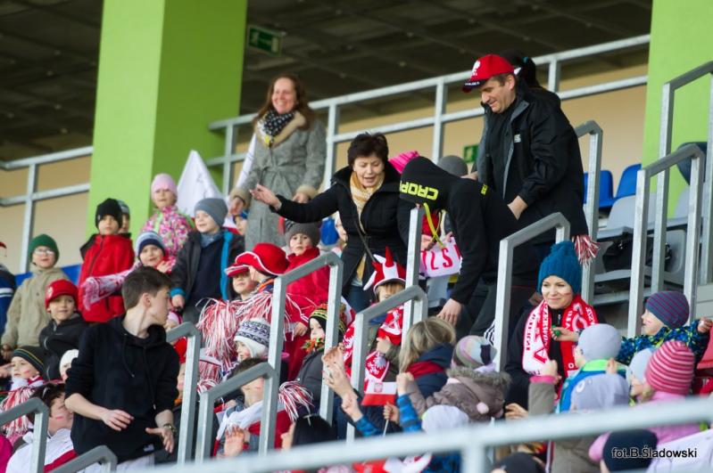 Wspaniała atmosfera panująca na trybunach i doping kibiców, jak zwykle i tym razem towarzyszyły meczowi rozgrywanemu na stadionie w Ząbkach.