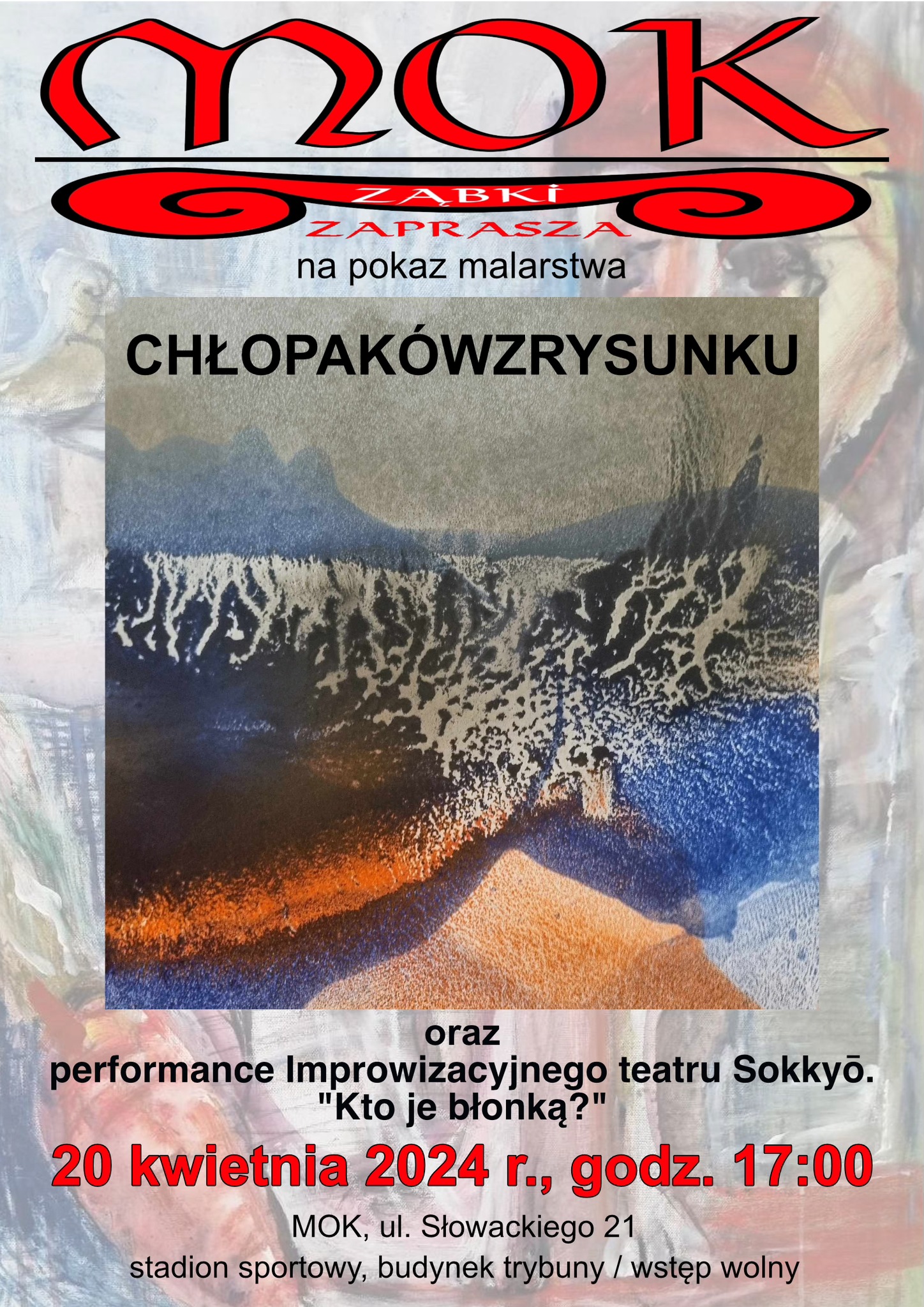 Już w sobotę pokaz malarstwa i performance improwizacyjny w MOK Ząbki, w trybunie sportowej MOSiR w sali widowiskowej. Zapraszamy o godz. 17:00 w sobotę 20 kwietnia!