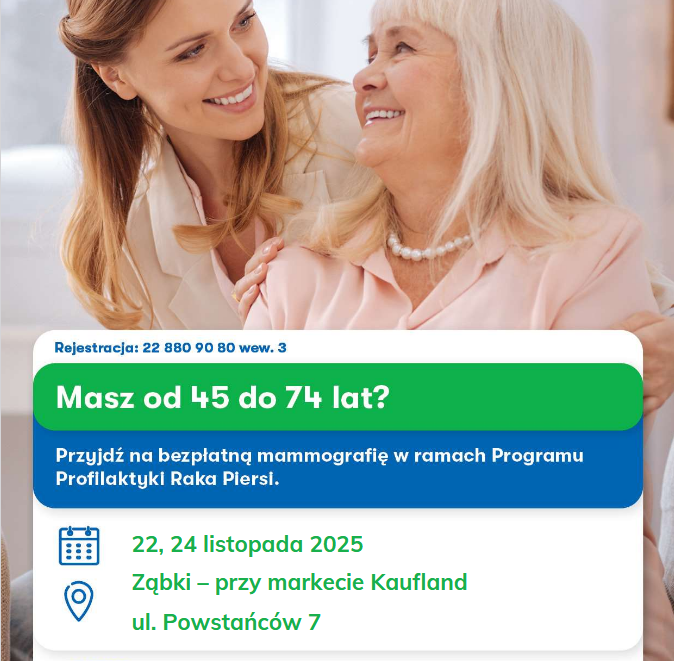 Zapraszamy na bezpłatne badania mammograficzne w technologii cyfrowej w ramach Programu Profilaktyki Raka Piersi finansowanego przez NFZ.